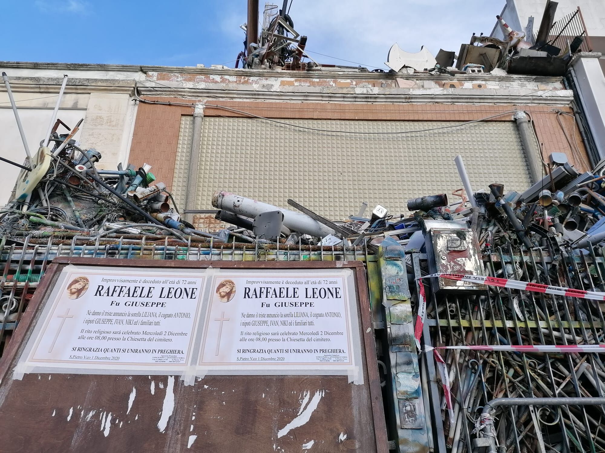 “Finisce qui la vita del sognatore Raffaele Leone, nel suo “ready made” che quasi gli ha impedito la sua ultima uscita. Molti lo hanno conosciuto come colui che raccoglieva rottami per accatastarli sulla ringhiera di casa. Doveva essergli rimasta nel cuore quell’America che molti anni fa lo aveva accolto come artista, le lattonerie accatastate lungo le inferriate a urlare il disagio di una società decadente. Quando tornò in Italia fece una mostra a Milano presentata dal giornalista Gianni Brera ed ebbe diverse proposte ammiccanti. Tornò a S. Pietro per amore dei suoi cari” è il suo ricordo.