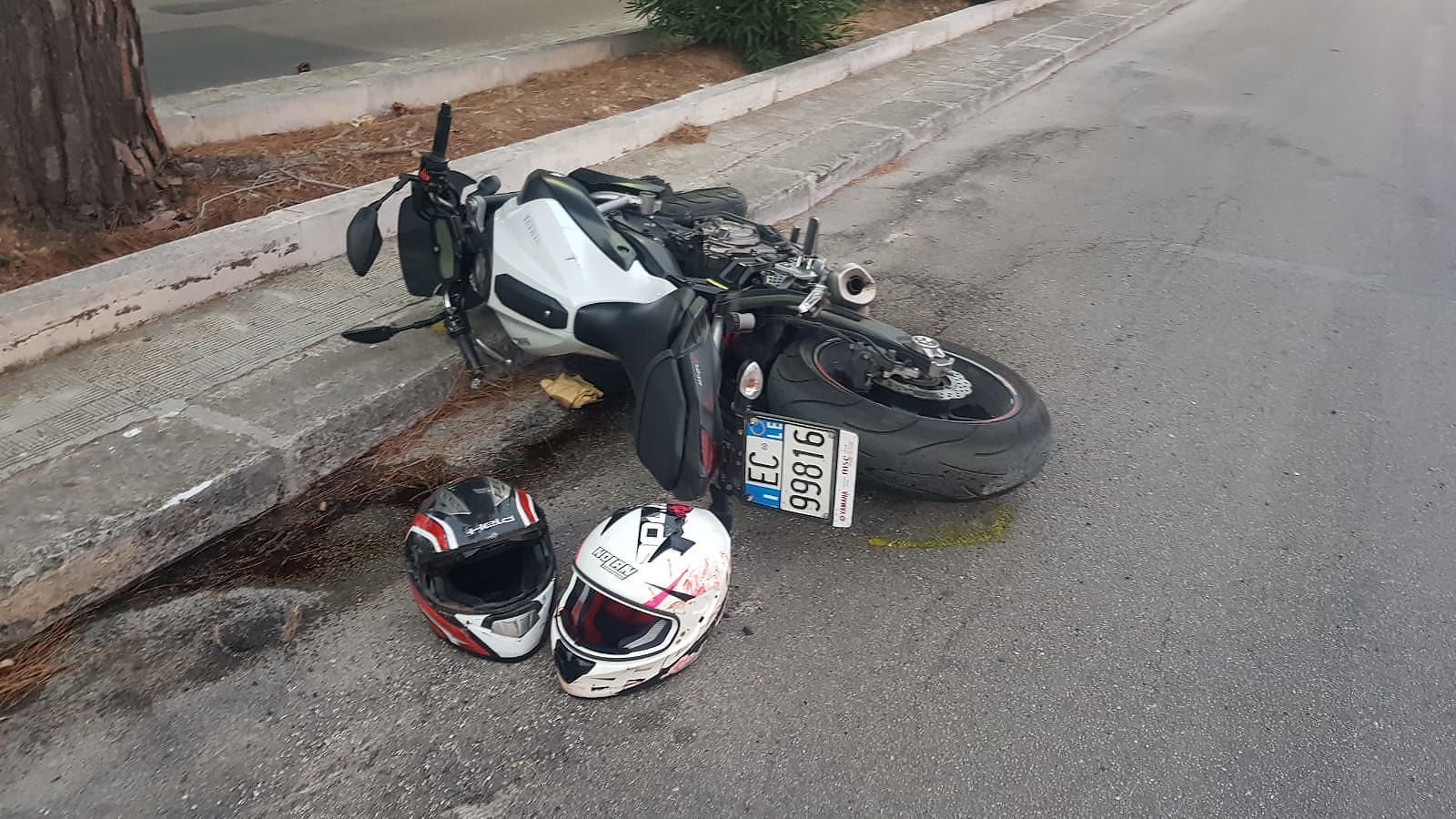 E’ bastato un urto, banale, all’incrocio. La moto è scivolata sull’asfalto e si è fermata contro il marciapiedi, graffiandosi appena.
