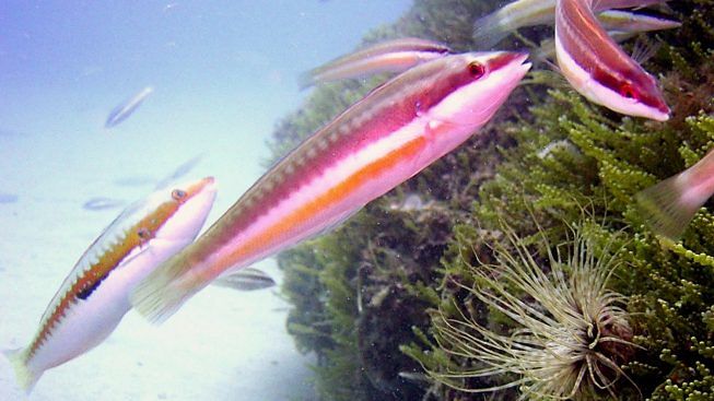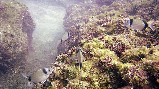 Il ciglio roccioso ed i grossi massi incrostati di vegetazione, soprattutto caluerpa – un’alga infestante di origine tropicale che non permette alla vegetazione autoctona di crescere e proliferare come prima, ma che ha, comunque, una sua bellezza estetica, – sono pieni di anfratti e fessurazioni densamente abitate da pesci di ogni genere, da giovani murene che condividono la loro tana con gamberetti pulitori che si nutrono dei residui di cibo rimasti fra gli aguzzi denti della vorace coinquilina con cui hanno imparato a convivere in armonia, a quelle occupate da vere e proprie colonie di saraghi od occhiate anche di notevole pezzatura.