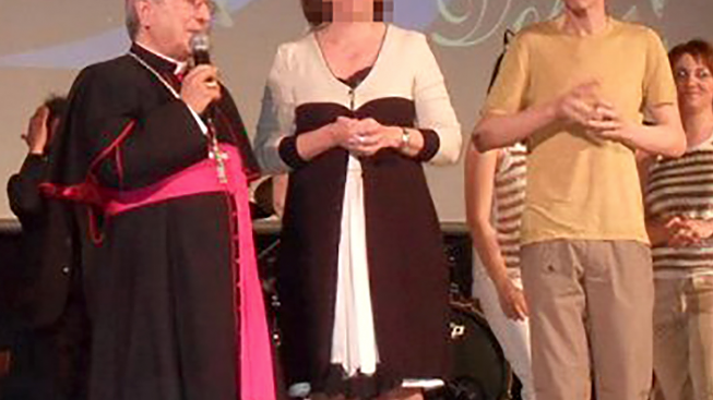 La lettera, depositata in procura da Catanzaro, ha un appunto scritto a penna sotto la firma di Talucci. C’è scritto: “Per conoscenza a don Francesco Caramia”. Caramia, per cinque anni segretario particolare di Talucci, è l’ex parroco del rione Bozzano, arrestato lo scorso anno per presunti abusi sessuali nei confronti di un chierichetto. Proprio nella chiesa di San Giustino de Jacobis, Paolo Catanzaro e la sua cerchia di fedelissimi si erano trasferiti dopo aver abbandonato la chiesetta di Uggio. Catanzaro, cominciando ad alimentare il suo sogno di entrare nel mondo dello spettacolo, era stato nominato direttore del coro dei ragazzi e aveva fondato un gruppo musicale, i Signum, con il quale aveva iniziato a tenere concerti di musica sacra. In diverse occasioni, ospite di queste esibizioni era stato lo stesso Talucci (la foto di questa pagina li ritrae in una di quelle manifestazioni). La seconda lettera con il sigillo arcivescovile, anch’essa in possesso di Catanzaro e depositata in procura, è datata 10 marzo 2013 ed è indirizzata all’arcivescovo Luis Ladaria, segretario della Congregazione per la dottrina della fede della Città del Vaticano.