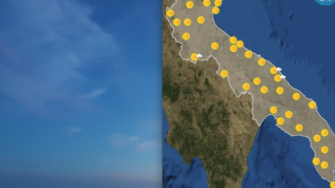 Dopo l’affondo freddo verificatosi nei giorni scorsi, sul finire dell’anno ritornerà l’anticiclone. Quindi per la mattinata di lunedì 30 dicembre si prevede qualche residuo fenomeno sulla parte nord della regione con la neve a quota 500 metri, poi dalle ore centrali il tempo migliorerà, cieli poco nuvolosi sul Salento. Venti moderati e freddi da nord-est con attenuazione dalla sera. Temperature tra i 7°C e i 10°C. Martedì 31 cieli sereni o poco nuvolosi, venti moderati da nord in Salento. Temperature minime in aumento fino a 10°C su Brindisi, in rialzo anche le massime che si attesteranno intorno ai 12°C. Per il primo giorno del nuovo anno regnerà il bel tempo con la tramontana che soffierà moderatamente. Temperature sia massime che minime in rialzo.