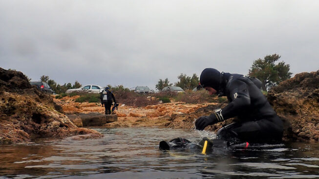 Nel frattempo passano un paio di pattuglie di forze dell’ordine, in moto ed in auto: una rapida occhiata a distanza e nulla da dire o eccepire; anche i miei più dubbiosi compagni di immersione tirano un sospiro di sollievo, quasi increduli a dovermi dare ragione.