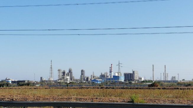Dietro la recinzione arrugginita si intravede la struttura del centro Intersocietario di Formazione Professionale. Attraverso una strada non asfaltata e difficile da percorrere si raggiungo i cancelli definitivamente chiusi della Siprosuole, più avanti ancora c’è quel che resta della Ittica Sud, una cooperativa di lavoro creata per iniziativa di un gruppo di cassaintegrati Montedison negli anni 80. La situazione poco cambia sulla strada parallela: anche qui altri ruderi di piccole-medie industrie chiuse nel tempo, l’unica eccezione è Europlastic Sud, sorta con fondi pubblici per l’industrializzazione del Mezzogiorno. Regge il gas con i serbatoi ex Ipem, e la Peritas con i silos di ammoniaca, minacciata in passato dal racket delle estorsioni.