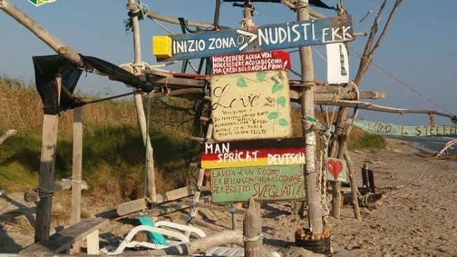 Come si evince dalle foto, il riferimento al movimento nudista è lampante e quindi l’identificazione del luogo quale punto di ritrovo per gli amanti del genere è palese.