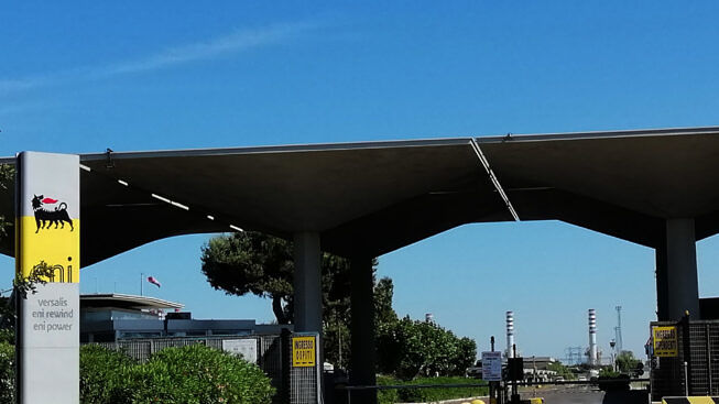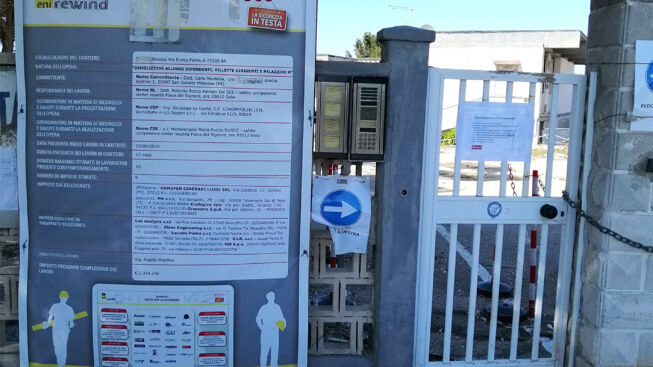 Leggo un grande cartello, poi ne leggo altri due: “Demolizione alloggi sociali”, Il committente è ENI REWIND che dal 2003, anno in cui Enichem ha conferito le attività produttive a Polimeri Europa (oggi Versalis) ed è stata ridenominata Syndial, si è concentrata nella bonifica di aree ex industriali e nella gestione delle acque e dei rifiuti. Un percorso che ha portato alla crescita del know how ambientale della società che oggi è diventata global contractor di Eni, allargando il perimetro delle proprie attività anche all’estero. Dal 1° novembre 2019 Syndial ha cambiato nome in Eni Rewind.