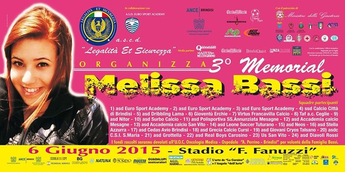 CITTA' / 4 Giugno 2015 Memorial “Melissa Bassi”, sabato si torna in campo al “Fanuzzi” Sabato 9 giugno, a partire dalle 9, presso lo stato comunale Fanuzzi di Brindisi si darà inizio alla seconda ... Di Gianmarco Di Napoli