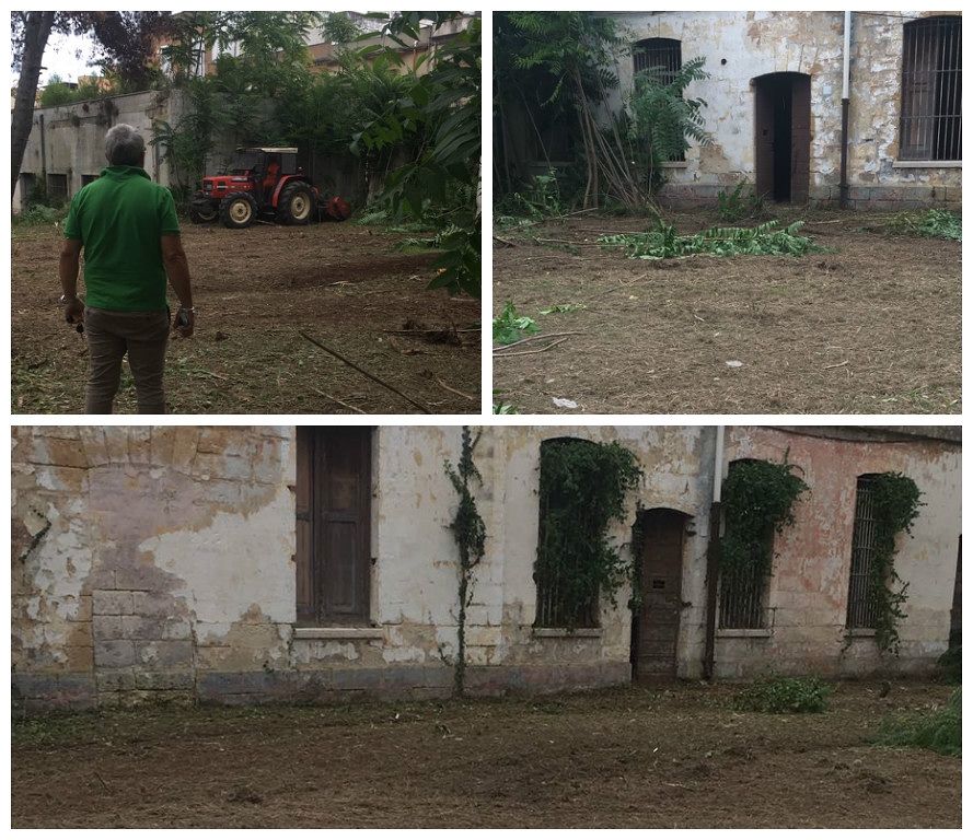 La struttura, acquisita dal Comune di Brindisi nel dicembre 2014 dal Demanio, era totalmente sommersa da vegetazione e immondizia.