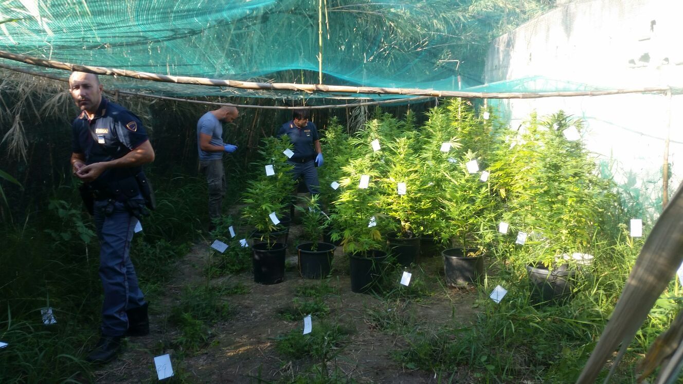 I poliziotti hanno avvertito subito nell’aria un forte, acre odore, di “marijuana” e, dopo non poche difficoltà, dovute all’impervio percorso, sono giunti in una zona, invisibile dal piano stradale, poiché coperta da un telone di telo-rete di colore verde che la proteggeva sia sulla parte superiore che ai lati, come un vera e propria serra.