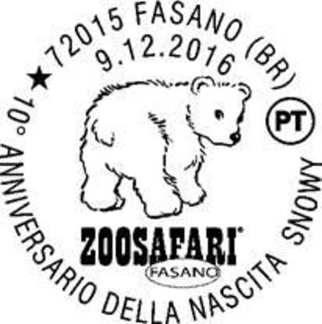 Annullo postale per il decennale della nascita dell’Orso polare ‘Snowy’, il folder con due cartoline che ritraggono l’animale e l’emissione di due francobolli, realizzati da Poste Italiane, in favore dello Zoosafari. È l’iniziativa di Poste Italiane che sarà presentata il 7 dicembre prossimo a Fasano.
