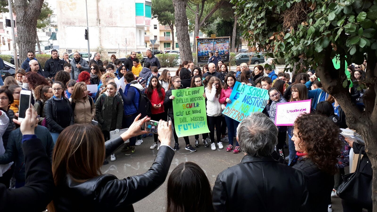 Venerdì mattina 31 marzo gli studenti della Pacuvio, insieme ai docenti e genitori, hanno organizzato un flash-mob davanti al cancello della scuola ballando “Il silenzio è dolo” di Marco Ligabue e “Occidentali’s karma” ed esponendo diversi cartelloni con frasi di protesta contro l’atto di vandalismo subito dalla loro scuola, del tipo “Giù le mani dalle nostre scuole, rispettatele. Chi distrugge la scuola cancella il futuro i nostri sogni”, “La scuola è nostra e noi la difendiamo”, “Giù le mani dalla nostra scuola giù le mani dal nostro futuro”, “La scuola vincerà perché nessuno ci fermerà”.