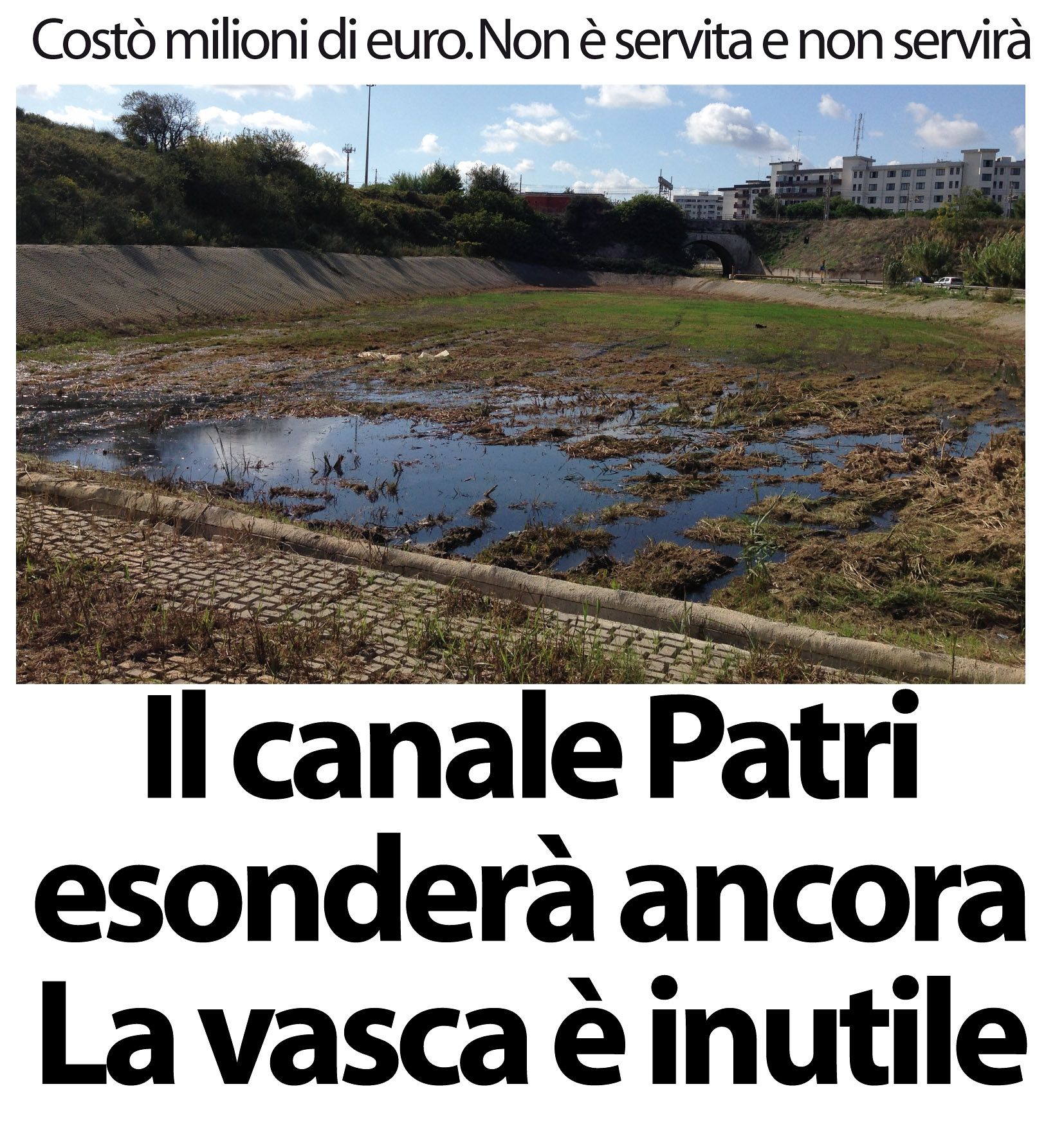 Dell’alluvione restano ora solo piccole pozze tra macchie d’erba secca sparse qua e là. Tracce lasciate dall’acquazzone che il 7 ottobre si è abbattuto su Brindisi, allagando strade, case, sottopassi, attività commerciali, provocando danni per centinaia di migliaia di euro. Un disastro prevedibile, già verificatosi in passato, e che non avrebbe dovuto ripetersi. Mai più. Per scongiurarlo, nel 2009, fu realizzata una “vasca di limazione” tra il ponte ferroviario e la strada provinciale per Lecce (all’altezza della Questura di Brindisi), tra le cui sponde le acque del canale Patri avrebbe dovuto accumularsi e fermarsi nel caso di forti piogge e quindi di esondazione.