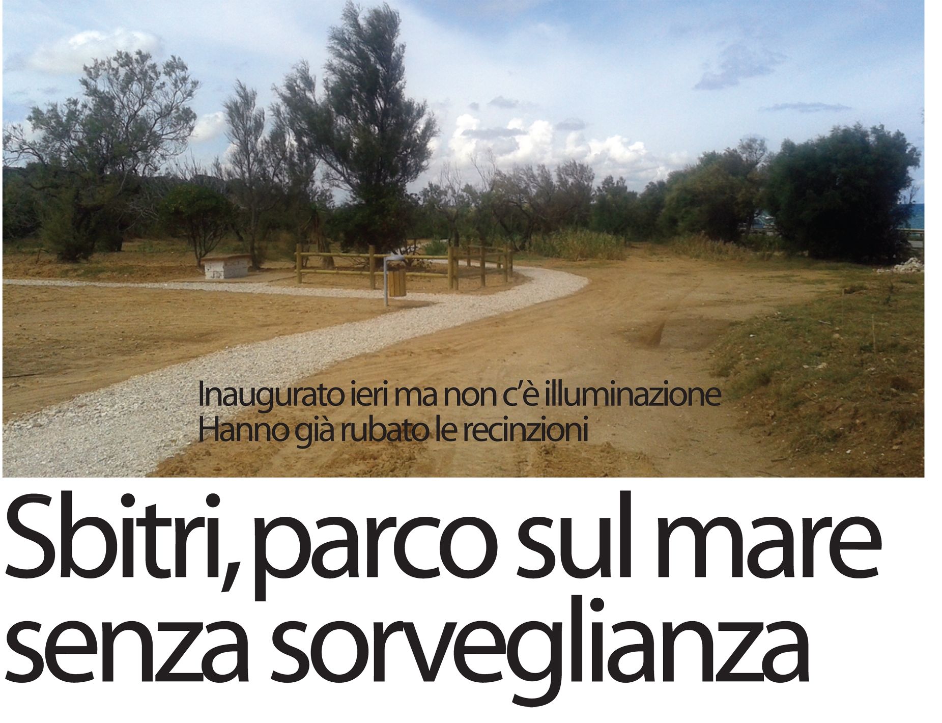 Un parco a metà: così si presenta l’area, in località Sbitri, inaugurata questa mattinata dal sindaco Mimmo Consales. Dove, fino a un paio d’anni fa, sorgevano baracche e ammassi d’amianto, quasi un biglietto da visita del degrado che caratterizzava questa città, l’Amministrazione comunale ha intravisto un’area verde, un parco che si va ad aggiungere a quelli già esistenti: quello intitolato ad Antonio Di Giulio e quello del Cillarese.