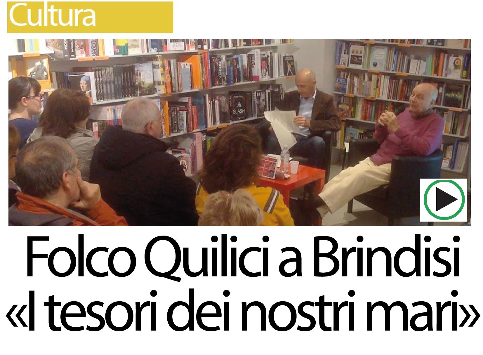 Folco Quilici, il celebre documentarista cinematografico e televisivo e scrittore, ha fatto ritorno a Brindisi. Dopo aver inaugurato nel luglio 2010 una mostra dedicata alle sue foto naturalistiche negli spazi di Palazzo Nervegna “I mari dell’uomo di Folco Quilici”, ieri sera, alla Feltrinelli in Corso Umberto I, ha presentato la sua ultima fatica letteraria “Relitti e tesori”, storie straordinarie di ricchezze custodite nei fondali degli oceani: dai tesori dei Maya, Aztechi e Incas razziati dai galeoni spagnoli ai bottini delle navi pirata andati persi per la furia delle tempeste.