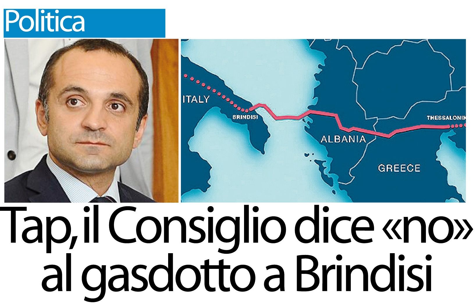 Il Consiglio comunale dice no all’approdo del gasdotto “Tap” a Brindisi. Dopo mesi di polemiche l’aula ha poco fa approvato all’unanimità l’ordine del giorno presentato dall’opposizione, che impegna il sindaco Mimmo Consales al diniego assoluto nei confronti di qualunque ipotesi di approdo della “Trans Adriatic Pipeline” nel territorio brindisino.