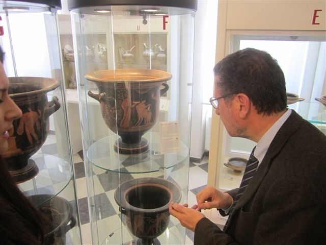 Il direttore della Triennale di Milano, Andrea Cancellato, ha visitato la palazzina del belvedere che ospita la collezione archeologica Faldetta, gestita dall’associazione culturale Le Colonne arte antica e contemporanea. Cancellato (nella foto) ha prestato particolare attenzione a un cratere a campana del quarto secolo avanti Cristo, considerato unico al mondo per la preziosa decorazione.