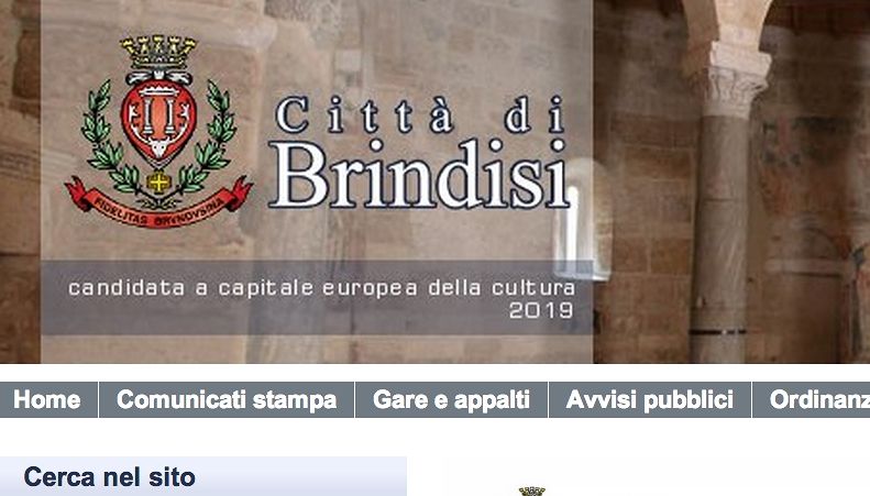 Intanto il premio fedeltà spetta a chi cura il sito del Comune di Brindisi il quale, forse nella speranza di non far torto al sogno di Mennitti, ha lasciato ben in mostra la dicitura “Brindisi candidata a capitale europea 2019”  in cima all’home page (foto).