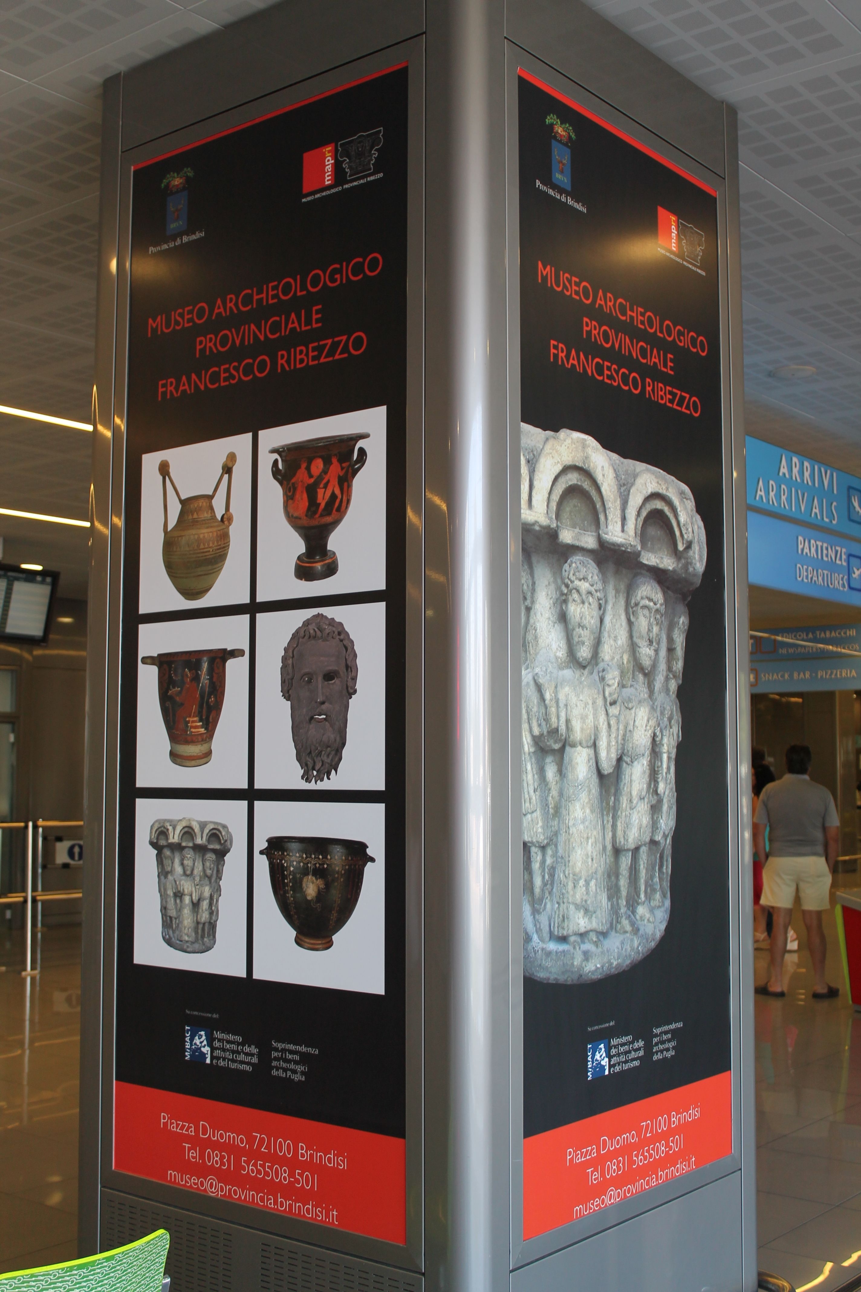Da qualche giorno, presso l’area arrivi dell’Aeroporto del Salento di Brindisi, campeggia una colonna luminosa che pubblicizza il Museo Archeologico Provinciale “Ribezzo”. L’iniziativa, attuata al fine di promuovere e valorizzare il Museo, è stata resa possibile grazie alla sinergia tra Provincia di Brindisi, Aeroporti di Puglia, Fidanzia Sistemi, con la collaborazione della Soprintendenza per i Beni Archeologici della Puglia. Prosegue, intanto, l’impegno dell’Amministrazione provinciale sul fronte della cultura. Attraverso l’adesione all’iniziativa “Open days” infatti, è prevista l’apertura straordinaria del Museo Archeologico Provinciale “F. Ribezzo”, ogni sabato sera, dalle ore 20 alle ore 23. Sono previste attività di visita guidata, visita guidata animata e laboratori didattici per famiglie con bambini. Il prossimo appuntamento con l’apertura straordinaria è per sabato 19 luglio.