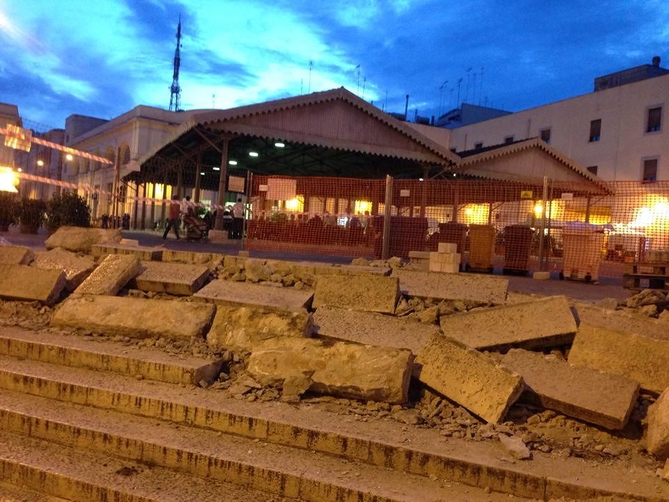 In piazza Mercato, nel cuore di Brindisi, sono iniziati i lavori di “recupero e ristrutturazione”. Ma le premesse sono tutt’altro che lusinghiere: è stata abbattuta una delle due scalinate che si affacciano su via Cesare Battisti (quella di fronte all’ufficio postale) senza che si sappia in che modo verrà ricostruita.