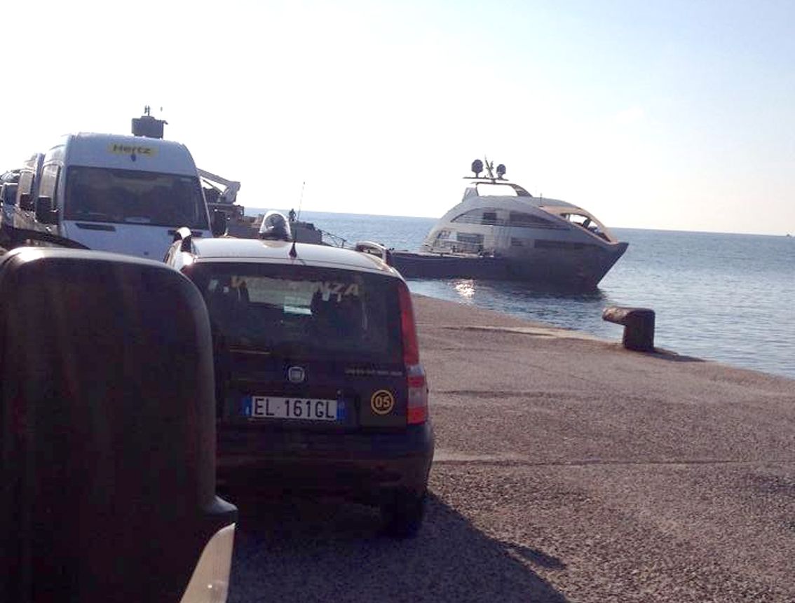 Nella foto scattata da Michele De Giorgi, lo yacht che è stato ormeggiato nei giorni scorsi nel porto di Brindisi e che ora è al centro delle riprese.