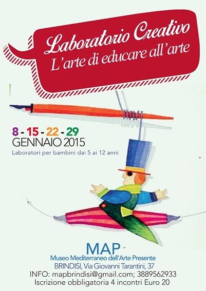 Per il gennaio 2015, il MAP propone il Laboratorio creativo “L’arte di educare all’arte” , un’articolata e mirata proposta didattica che mira a educare all’arte le giovani generazioni per stimolarle, con nuovi strumenti e chiavi di lettura utili, ad accrescere il loro interesse per le forme artistiche attuali, di non sempre facile lettura, ma ricche di spunti utili a liberare creatività e senso critico.