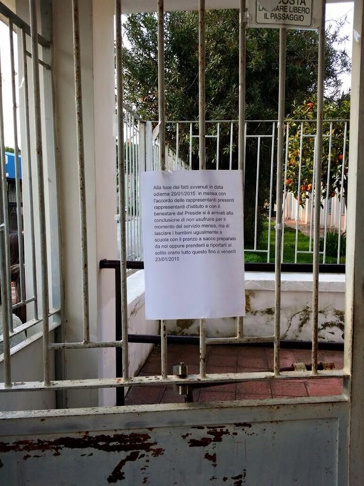Bambini dai 3 ai 10 anni che hanno dovuto mangiare panini pasti indecenti bambini che ogni giorno vengono ritirati da scuola solo per mezzora da genitori amici parenti estranei per consumare un pasto caldo e dignitoso a casa bambini che in silenzio reclamano un diritto che pagano ma non hanno e solo perché chi doveva assicurarglielo se ne sta a tentennare ancora dopo 3 settimane sul da farsi continua a dare fiducia ad un azienda che non sa nemmeno da dove cominciare. O che vuole offrire tonno e fagioli perché non sa pensare di meglio. Noi siamo stanchi, ora basta questa pagliacciata deve finire, questa gara d’appalto cadere e affidare tutto nelle mani di chi è in grado di garantire un servizio ottimo per i nostri figli..noi non abbiamo paura noi non finiremo mai di pretendere ciò che spetta di diritto ai nostri bambini..cari signori noi vogliamo e pretendiamo rispetto quindi entro oggi una risposta definitiva..inoltre vi chiediamo di non abbassare la testa e’ agire con forza e determinazione xche’ niente vale più del benessere dei bambini!