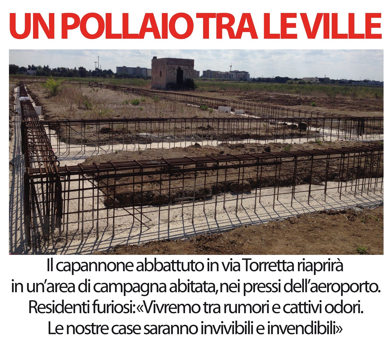 Anni di sacrifici e rinunce per guadagnarsi quel piccolo angolo di paradiso. Villette messe in piedi lontano dal frenetico caos cittadino, immerse nella pace della campagna, nel verde più rigoglioso, tra dritte file di uliveti e piantagioni di ortaggi. Solo natura, quiete e boccate d’aria buona. Ora, per gli abitanti di “strada per Scuole pie”, quel paradiso sta per rivelarsi un inferno. Perché lì, nel bel mezzo dell’agro brindisino che in una manciata di chilometri separa via Brandi dall’aeroporto civile del Salento, sta per sorgere un “capannone per attività avicola”. Insomma: un pollaio. Anzi, “il pollaio”: quello delle polemiche, quello che ha tenuto banco per mesi sulla stampa negli anni scorsi, demolito nonostante le resistenze del suo proprietario dalle ruspe inviate dal Comune per far spazio all’allargamento di via Torretta.