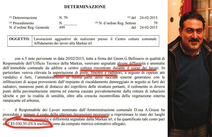 L’assessore ai Lavori Pubblici, Cosimo D’Angelo, sostiene che la notizia pubblicata da noi ieri sugli ulteriori 83 mila euro spesi dal Comune di Brindisi per rimettere in sesto la struttura destinata alla mensa pubblica non sia vera e che in realtà quel denaro sarebbe stato destinato “ad allestire le parti esterne e la divisione tra mensa per celiaci e tutti gli altri”. D’Angelo ha fatto le sue dichiarazioni ai microfoni di una emittente televisiva locale e si è guardato bene dal provare a contestare direttamente a noi quanto scritto. Perché è tutto assolutamente vero, In questa pagina riportiamo gli stralci della determina firmata dal dirigente Nicola Zizzi nella quale si fa riferimento all’improvviso aumento dei costi. Nella determina non si fa assolutamente riferimento agli allestimenti cui lui ha fatto riferimento. E non sappiamo se sia peggio pensare che abbia deliberatamente rigirato la frittata cercando giustificazioni televisive. Oppure che lui, assessore ai Lavori pubblici, non sappia neanche in che modo vengano spesi i nostri soldi.