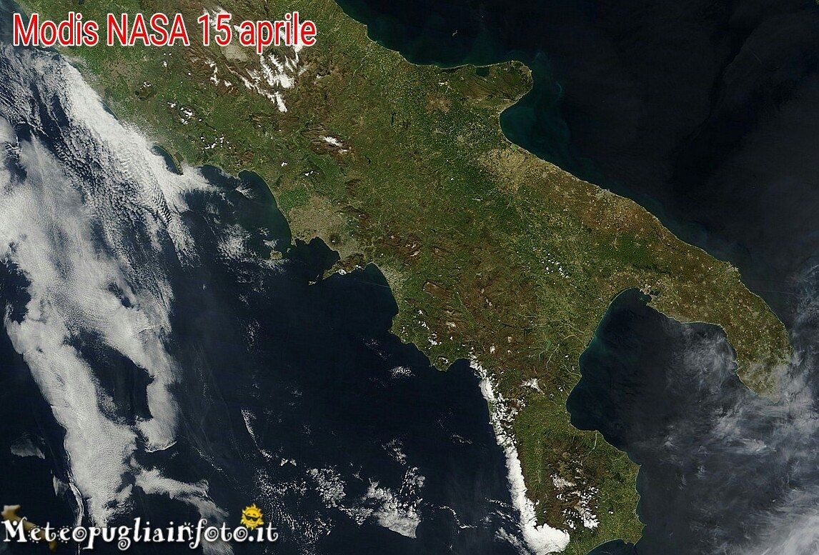 L’impetuoso dominio anticiclonico sulla #Puglia visto quest’oggi dal satellite “Modis” della NASA. Solo qualche velatura sul basso Salento in un contesto molto mite, con temperature massime che stanno toccando i 23°C specie sul litorale ionico e sul Tovoliere. Situazione che resterà tale almeno fino a domenica, quando un debole disturbo nuvoloso, sterile di pioggia, apporterà un leggero calo termico su tutta la regione. Previsioni e foto di @Meteopuglia in Foto