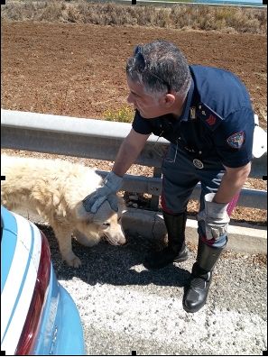Grosso cane salvato dalla Stradale: vagava sulla Ss 379