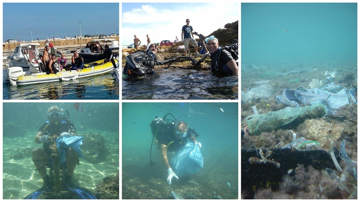 L’appuntamento era per le 9,00 al porticciolo, montata l’attrezzatura subacquea ed effettuato un breve briefing per una migliore divisione dei compiti mentre io ed Augusto ci siamo calati da terra, fra la Lampara ed il Picnic, posti assai noti e rinomati fra gli anni sessanta ed ottanta ed oramai ridotti a ruderi vergognosi, il resto del gruppo, composto da Alberta, Federica, Daniela, Mauro, Claudio, Giuseppe, Damiano ed Armando, è salpato alla volta della conca ed a gruppi di due si sono calati in acqua, armati di sacchi e pazienza fra la Conchetta, la conca e la vera e propria baia di Materdomini. A farci da supporto anche Ada, Maria, Nicola e Gianluca.