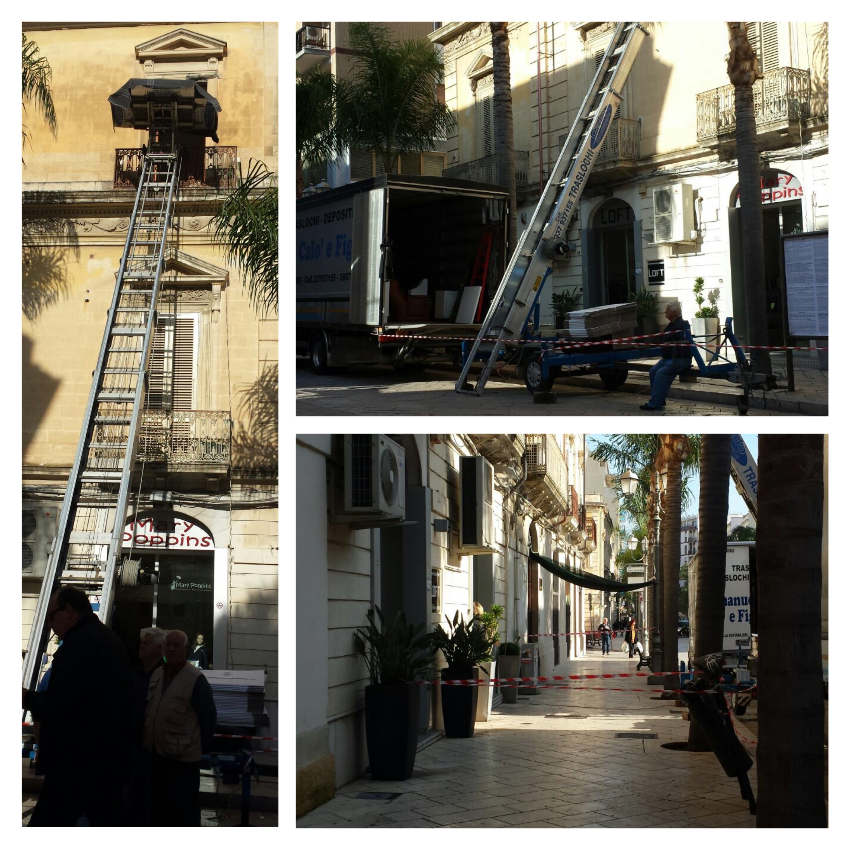 L’attività lavorativa di due attività commerciali di Brindisi è paralizzata da questa mattina per il trasloco di un privato, regolarmente autorizzato dal Comune, che ha transennato il marciapiedi impedendo il passaggio dei clienti, e persino dei titolari, in corso Umberto.