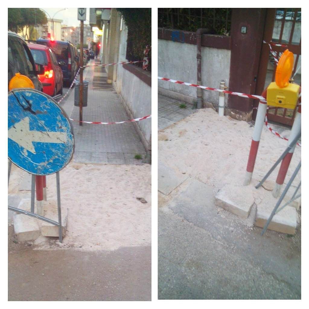 In viale San Giovanni Bosco dopo alcuni lavori effettuati sul marciapiedi la ditta ha sistemato alla meno peggio lasciando la situazione come si vede nelle foto. In questo modo lo scivolo per disabili che era stato creato in quel punto è scomparso e la madre di una bimba che viene accompagnata con la carrozzella da un negozio alla vicina scuola media non può più passare. Nessuno, al Comune, si è preoccupato che i lavori venissero effettuati a regola d’arte e che la situazione del marciapiedi fosse ripristinata.