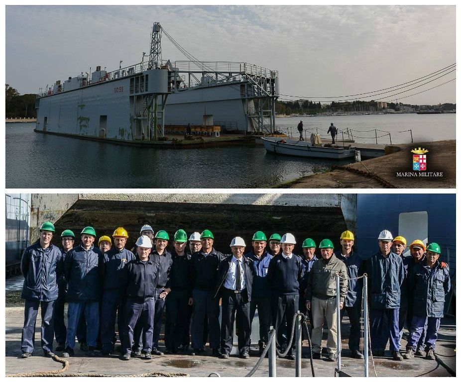 A distanza di circa un mese dal suo arrivo a Brindisi, il bacino GO 59 è divenuto operativo. Dopo la prima manovra di immersione sono stati portati in secco contemporaneamente una bettolina (galleggiante utilizzato per trasportare gasolio per rifornire le navi in porto) e un rimorchiatore portuale che potranno iniziare lavori di manutenzione allo scafo.