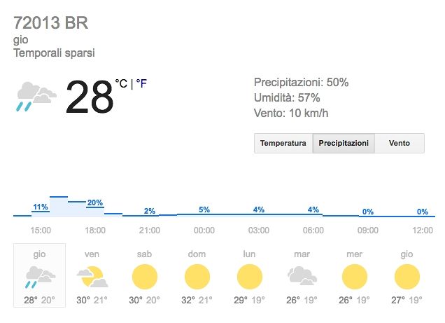 La Protezione civile Puglia ha diffuso un messaggio di allerta meteo valido sino alla mezzanotte di oggi, 18 agosto, che riguarda l’intera regione sulla quale sono previste precipitazioni isolate tendenti a sparse, anche a carattere di rovescio o temporale con cumulati da deboli a localmente moderati. Il rischio idrogeologico ha una criticità ordinaria. In ogni caso la Protezione civile comunale monitora costantemente la situazione.