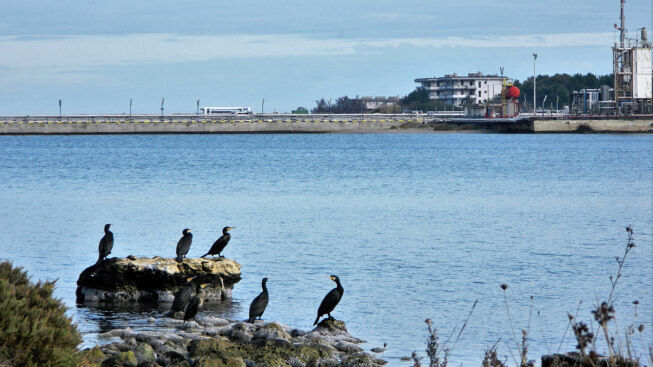 È facile incontrarli non solo sulla litoranea nord, sugli scogli prospicienti il Serrone e la Torre di Punta Penne, ma anche in area portuale, appollaiati sui bassi scogli fra l’Isola di Sant’Andrea e la diga di punta Riso, in compagnia di gabbiani, svassi e beccapesci, sulle isole Pedagne, alla foce di Fiume Grande a far da balia a piovanelli pancianera, voltapietre ed altri limicoli ed anche nel porto interno, alla foce del Canale Cillarese dove convivono pacificamente con folaghe ed anatre germanate oltre che con gli immancabili gabbiani. Alcuni esemplari frequentano abitualmente i laghetti del parco urbano dove sono diventati un’attrazione per i bambini, altri stazionano abitualmente sul relitto abbandonato del pontone Tenax davanti alle ex spiagge Fontanelle-Marimisti, altri ancora sul vecchio relitto albanese arenatosi trenta anni fa sulle secche di Punta Cavallo. Un po’ prima del tramonto si alzano in volo ed alcuni gruppi si spostano verso l’Invaso del Cillarese, dove trovano altri consimili, oltre che numerosi altri uccelli acquatici, altri verso le saline di Punta della Contessa dove si radunano più di un centinaio di individui, quelli che abitualmente frequentano la zona costiera a sud della città, per passare la notte in compagnia di anatre, aironi e fenicotteri.