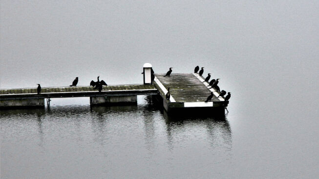 Va detto che, contrariamente a come vuol fare intendere chi auspica lo sterminio di questa specie – attraverso una decimazione da attuare sia attraverso il loro inserimento fra le specie cacciabili che attraverso campagne di abbattimento sistematico ad opera di cacciatori e guardie venatorie – che i cormorani dedicano ben poco del loro tempo alla ricerca del nutrimento, non sono bestie assatanate che si ingozzano all’inverosimile, ma mangiano lo stretto necessario per vivere e prosperare, passando il resto della giornata a godersi pigramente i deboli raggi del sole invernale e la brezza marina, sistemandosi il piumaggio.