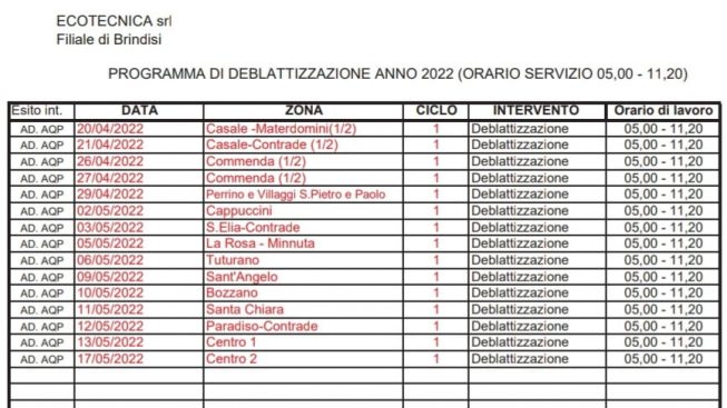 È stata avviata oggi l’attività di deblattizzazione e derattizzazione della rete fognaria AQP e di quella del Comune di Brindisi che si svolgerà in tutti i quartieri della città.