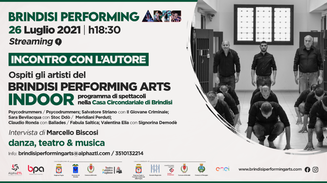 Gli artisti che si esibiranno all’interno della casa circondariale di Brindisi saranno i protagonisti oggi, lunedì 26 luglio 2021, del settimo “Incontro con l’autore”, vera e propria vetrina del “Brindisi Performing Arts Festival”.