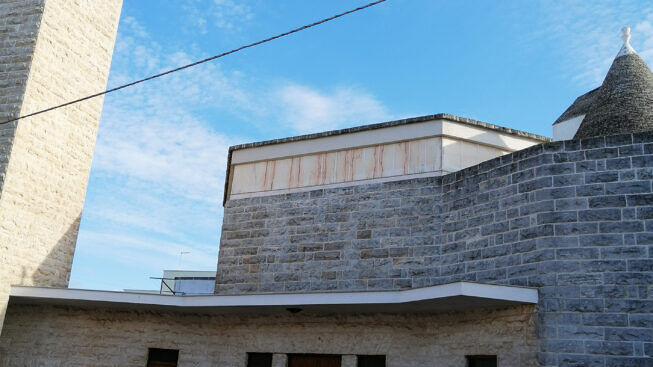 Come fosse necessario eco, a poche decine di metri, la moderna chiesa parrocchiale dedicata all’Immacolata, che non rinuncia alla civetteria di piccoli trulli, ma che si concede al cielo con un campanile a forma quadrata che sovrasta ed invita a guardare in alto, ma proprio in alto, dove, solo il sacrificio ed il duro lavoro, ti fanno arrivare.