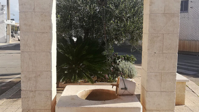Nella contrada fasanese di Pozzo Faceto, non paia strano, è collocata la stazione ferroviaria di Cisternino, uno dei borghi più belli d’Italia, che deve il nome a Sturnoi, compagno di Diomede, che dopo la Guerra di Troia avrebbe fondato una città vicina che, in seguito, occupata dai Romani, fu chiamata Sturninum, l’attuale Ostuni. Nonostante nei pressi siano stati rinvenuti importanti testimonianze dell’età del bronzo, il suo nome dal latino “Cis Sturnium” non significa altro che “al di qua di Ostuni”. All’interno della frazione lungo viale dei Miracoli, troneggia una bella fontana pubblica a forma di pozzo dell’acqua e l’erogatore un vecchio secchio di alluminio. Pare una foto risalente a qualche decennio fa, quando a transitare per quelle strade secondarie, traini di cavalli alleggerivano il traffico pedonale per le medio lunghe distanze.