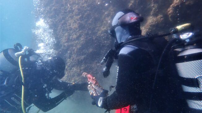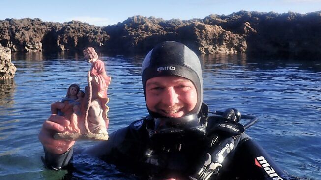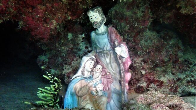 Anche quest’anno, come è ormai tradizione, un piccolo drappello di subacquei brindisini, di cui mi onoro far parte, ha deposto la statuetta della Natività in una grotticella ad alcuni metri di profondità, alla base di una parete rocciosa, nei pressi della Conca di Cala Materdomini. Ciò è avvenuto proprio alla vigilia di Natale quando il maestrale, anzi “lu zzifuru”, per dirla alla sciabicota, ha concesso una tregua e la bonaccia o, per dirla alla brindisina, il “quagghio di mare” ha avuto il sopravvento e si sono presentate le condizioni ideali. Anche perché la giornata invernale era riscaldata da un insolito sole primaverile che ha reso veramente piacevole l’immersione la quale, così, non si è limitata al mordi e fuggi della breve processione al luogo deputato ad ospitare la Sacra Famiglia fino all’Epifania – quando verrà riportata in superficie – ma si è prolungata, essendoci concessi anche un’oretta di svago sottomarino fra polpi, pesci e le altre creature marine che popolano il nostro bellissimo mare.