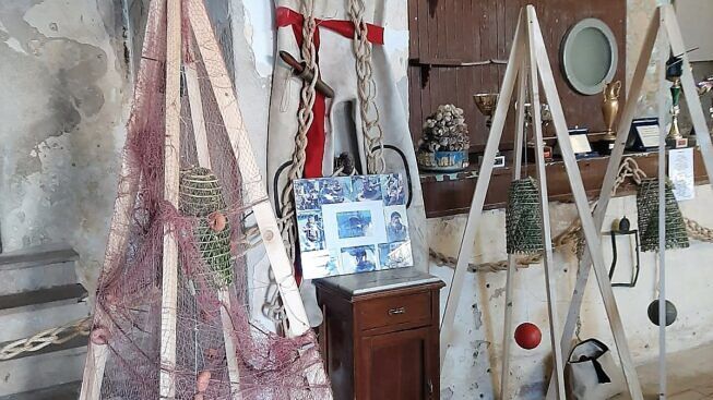 Ma non è finita. Insieme alle decorazioni artistiche che rievocano il Natale e che adornano anche gli oggetti appartenenti alla vita quotidiana legata al mare, vi sono anche elementi grafici e virtuali che spiegano la loro storia e una vera e propria mostra fotografica, davvero suggestiva, che racconta da vicino la tipica giornata dei pescatori brindisini, nel passato, come nel presente, il tutto messo in piedi anche grazie all’impegno di Giulia Ruggiero e Genny Giammarruco con la collaborazione degli artisti Davide Taberini e Francesca Prudentino del Circolo remiero.