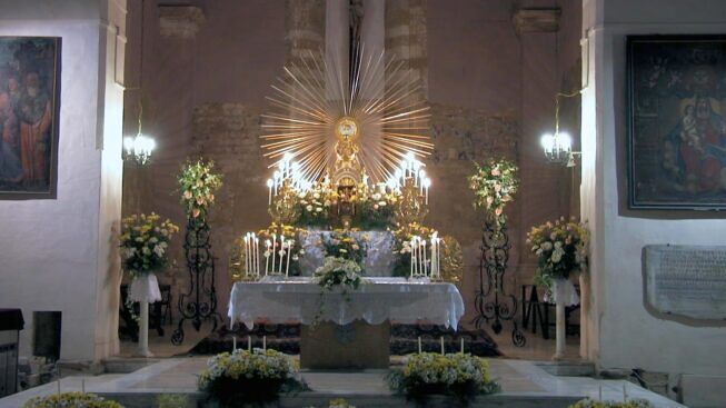 La Domenica delle Palme, a rievocare l’ingresso di Gesù a Gerusalemme, si svolgeva l’antica processione dell’Osanna, con il Capitolo e i fedeli muniti di rami di ulivo benedetti, che partendo dalla Cattedrale giungevano alla collinetta dov’è ora l’ex pesa pubblica dei Cappuccini: qui esisteva un monticello a forma tronco conica con scalinate disposte sui quattro lati, sulla sommità c’era il leggio affiancato da una colonna in marmo sormontata da una croce, oggi conservata all’interno della chiesa di S. Maria del Casale, e una cripta ipogea con la volta arricchita da affreschi bizantini. In questo luogo veniva letta l’epistola in lingua greca, una delle ultime memorie del rito religioso conservato per secoli dalle numerose colonie elleniche stabilite nel Salento, rimasta attiva sino ai primi anni ’50 del Novecento. La cerimonia era inoltre una rara opportunità di corteggiamento tra i giovani, con scambio di sguardi intensi a preludio del fidanzamento. Una volta tornati a casa, i ramoscelli benedetti venivano suddivisi i più parti: un pezzo veniva posto sull’uscio d’ingresso, uno sul terrazzo, un rametto veniva sistemato sul quadro della Madonna, un altro vicino alle foto dei parenti deceduti, dove c’era sempre un lumino acceso, e sulla testata del letto matrimoniale, beneaugurante. Altre fronde venivano sistemate sulle tombe di famiglia, nelle campagne di proprietà, sulle barche dei pescatori e nelle botteghe degli artigiani, era un modo per diffondere in ogni luogo la benedizione ricevuta, ma anche un rituale scaramantico-religioso a protezione contro ogni male.