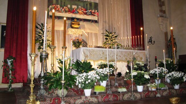 La mattina del Giovedì Santo il Vescovo, con una solenne cerimonia in Cattedrale, consacra il Sacro Crisma (l’olio benedetto) e nel tardo pomeriggio in ogni chiesa vi è la celebrazione liturgica vespertina “in Coena Domini”, a ricordo dell’Ultima Cena di Gesù con i discepoli e il rito della Lavanda dei piedi. Al termine delle sacre funzioni inizia la visita nelle chiese ai cosiddetti “Sepolcri”, ovvero gli Altari della Reposizione dove ci si dovrebbe fermare in raccoglimento davanti all’esposizione del S.S. Sacramento. Gli altari sono appositamente addobbati con fiori colorati di vario genere, in un recente passato erano adornati quasi esclusivamente con le piantine di grano e di legumi dal caratteristico colore giallognolo, poiché fatti sviluppare in ambienti oscuri già dalla metà del periodo quaresimale. La tradizione vuole che ci si debba recare ad almeno sette chiese diverse, o comunque a rendere visita ad un numero dispari di sepolcri. Dopo la mezzanotte, nelle stradine del centro storico pertinenti la parrocchia di Santa Lucia, si svolgeva la suggestiva rievocazione della ricerca del Figlio Gesù da parte di Maria, con lo squillo acuto della tromba a simboleggiare drammaticamente il richiamo disperato della Vergine, accompagnato dal ripetuto rullo di tamburo. Una tradizione secolare che suscitava grande emozione, e non solo tra gli abitanti della zona.