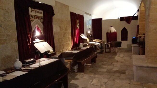 Durante il percorso sensoriale si viaggia dalle origini della scrittura alle nuove frontiere della comunicazione. Il fruitore ha l’occasione di rivivere le tappe che hanno permesso la straordinaria avventura della comunicazione scritta, dai graffiti rupestri al libro digitale. E’ possibile dipingere come i progenitori che, fin dal Paleolitico, hanno lasciato tracce di sé raffigurando scene di vita quotidiana con i colori che la natura metteva loro a disposizione. E’ possibile scoprire come la nascita della civiltà, nelle aree dei grandi fiumi, abbia portato alla necessità di codificare un’enorme quantità di informazioni, così sarà possibile provare a modellare e incidere le tavolette di argilla, cimentandoti con i simboli grafici che rappresentavano idee, oggetti e azioni prima che i suoni emessi per pronunciare le parole si trasformassero in alfabeto. Attraverso la fitta trama del papiro e della pergamena il viaggio letterario prosegue dai primi testi giuridici, necessari per far conoscere e rispettare le leggi, fino alla letteratura e alla filosofia, alla storia e alla matematica, varcando la soglia di spazi illimitati della conoscenza. Dopo aver intinto le penne d’oca nell’inchiostro, è possibile mettersi alla prova con la paziente arte degli amanuensi, che hanno garantito la conservazione di una immensa produzione libraria. Allievo del mastro cartaio, ciascuno dei partecipanti può creare il suo foglio di carta per poi imparare da Gutenberg il segreto della rivoluzionaria stampa a caratteri mobili, che ha aperto la via dell’istruzione e del sapere universale. Una sorpresa sono poi i gradini della Books Stair che conducono alla Libreria del futuro; immerso nel profumo delle pagine di carta, circondato da robot e giganteschi schermi touchscreen, da dove parte il viaggio virtuale verso le nuove frontiere delle parole. La History Digital Library, quindi, non raccoglie solo i libri, una delle sue caratteristiche sono i laboratori creativi basati su competenze di storici, informatici, esperti in comunicazione e divulgazione multimediale, attori, rievocatori e scenografi. Tutto questo consente di sviluppare un percorso conoscitivo attraverso esperienze immersive e rievocative, 3d mapping e storytelling, formazione professionale ed edutaiment. Famiglie, scuole e turisti sono i maggiori fruitori. Al suo interno vi sono allestimenti e personaggi reali che interagiscono con quelli virtuali,