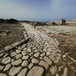 Nel tragitto guidato, l’ultima area è quella della necropoli, posta a sud ovest del parco archeologico, qualche centinaio di metri dalle costruzioni civili.