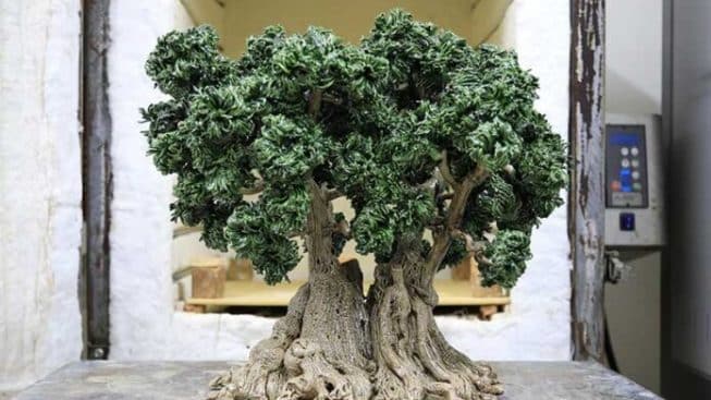 Ci sono l’Ulivo danzante, dai rami sinuosi che sembrano animati; il Barone, simbolo di forza e continuità, e il Vecchio sovrano dal tronco spesso e nodoso. Ogni esemplare è stato prima selezionato dal vivo, con sopralluoghi sul campo (nello specifico a Manduria e Massafra), e poi è stato oggetto di minuziose riprese video e reportage fotografici affinché la riproduzione in laboratorio fosse pressoché identica all’originale.