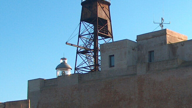 Il cosiddetto “faro di Forte a mare” era posto in realtà “sull’angolo rivolto a greco” del cavaliere del Castello Alfonsino. Con una parziale modifica dei lavori progettati nel 1834, dieci anni dopo venne potenziarlo per essere reso “visibile a maggior distanza”. Nel 1886, secondo la descrizione dall’Ascoli, era “un fanale a luce rossa fissa visibile a miglia 14, situato sopra una torretta circolare bianca della altezza di metri 46 dal pavimento del terrazzo su cui si basa”, fu poi sostituito nel 1930 da un traliccio in ferro a forma tronco piramidale a base quadrata, utile a sostenere la lanterna del faro con luce a quattro lampi per un periodo di venti secondi, con portata di circa trentacinque miglia marine. Entrò in uso nel 1938 con funzioni aeromarittime, restando attivo sino al 1984, quando venne dismesso conseguentemente alla dichiarazione di inagibilità del Forte, e sostituito da un faro elettronico posto sul Monumento al Marinaio. Nel maggio del 2004 il segnalamento tornò sulla terrazza dell’antico maniero, dove funziona con l’ottica rotante e portata della luce sul livello del mare pari a ventotto miglia. Nell’ottobre del 2017 il vecchio traliccio in ferro, uno straordinario esempio di archeologia industriale marittima da anni imbracato e sostenuto con una gabbia metallica, è stato smontato e conservato, da allora il paesaggio marittimo della città si è modificato, l’assenza di quella originale struttura si nota ancora oggi, soprattutto dal lungomare del porto interno.