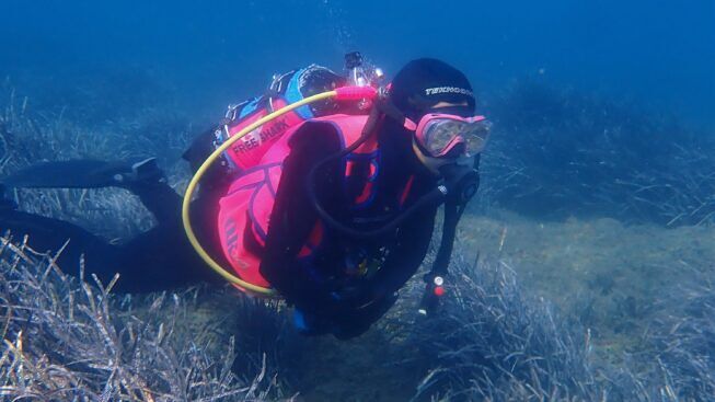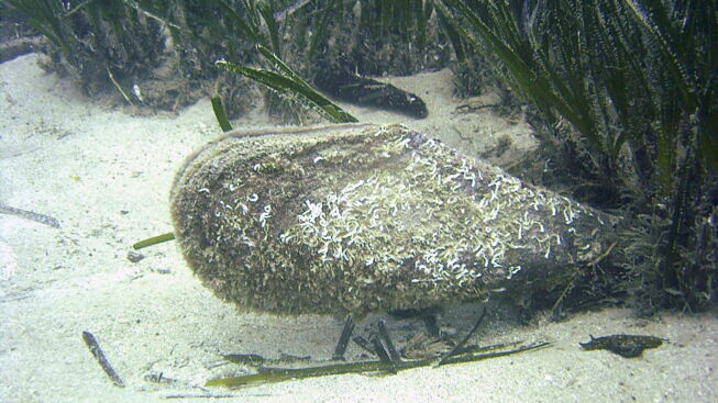 Un tempo era molto facile trovare grossi esemplari di Pinna nobilis (cozza penna, il più grande bivalve dei nostri mari, potendo raggiungere anche un metro di lunghezza) seminascoste fra le piante di Posidonia fino a quando, tre anni fa, sono stati registrati in tutto il Mediterraneo moltissimi casi di moria di questa cozza dovuti al protozoo parassita Haplosporidium pinnae che ha sterminato la quasi totalità della popolazione, portandola alla soglia dell’estinzione e, infatti, nel corso della nostra passeggiata sottomarina abbiamo rinvenuto solamente i resti di qualche conchiglia
