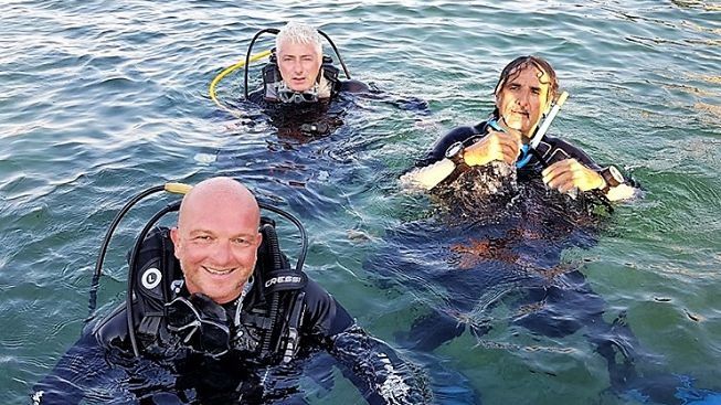 Impossibile, ovviamente e per le medesime ragioni, anche utilizzare i mezzi pubblici e allora, l’alternativa è una sola e ci trova tutti d’accordo: prendere il mare dalla ex “Lampara”, altro luogo scomparso della vecchia movida brindisina ed attraversare sott’acqua tutta la baia, fino alla Conca, raccattando il materiale plastico, e solo quello plastico questa volta, che avremmo incontrato.